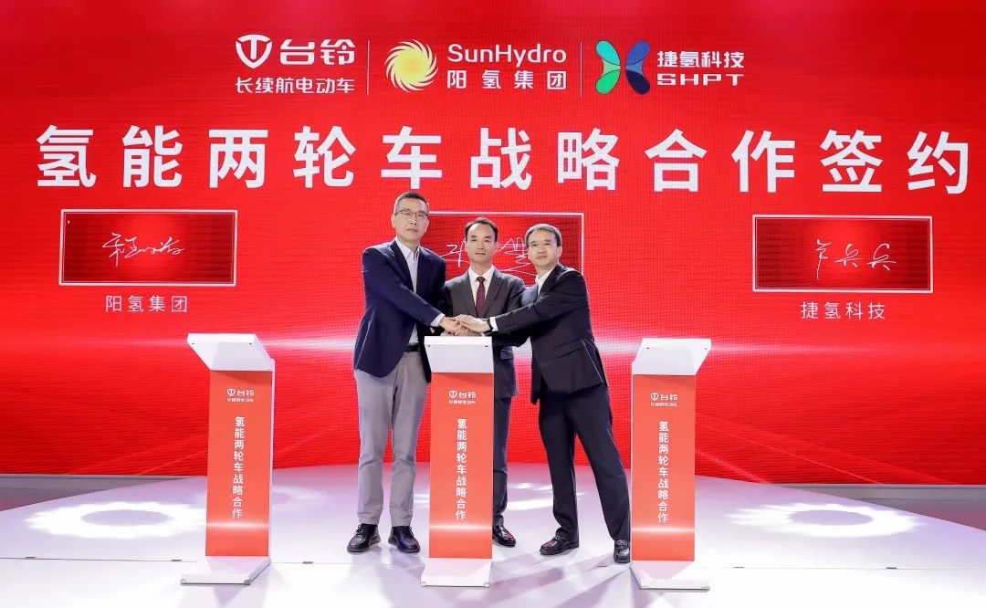 目前,台铃集团、阳氢集团、捷氢科技三方已经签订战略合作签约,拟联合实现10000辆氢能两轮车市场化运营。